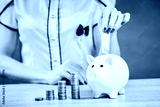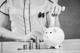 Piggy bank savings woman smiling happy