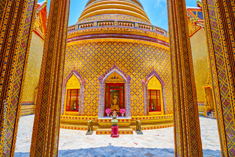 Phra Prang pagoda with golden ornaments, Wat Ratchabophit temple in Bangkok, Thailand