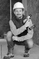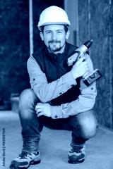 happy man handyman with a drill