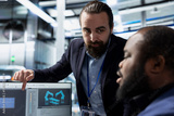Multiethnic group of solar energy experts and technicians evaluates system, promoting industrial innovation and engineering excellence. Corporate sustainability initiatives for growth.