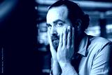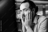 Data center cybersecurity worker scared by security breach. Worried IT staff member in data center panicking, trying to protect servers from hacker attack stealing sensitive information