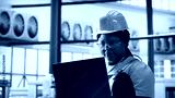 Woman conducts routine inspections in industry 4.0 solar panels plant using laptop. Engineer in photovoltaics smart factory testing equipment and reviewing system metrics using notebook