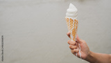 Melting ice cream cone hand holding ice cream waffle cone soft serve ice cream summer treat melting dessert cold snack sweet food outdoor food creamy texture