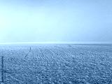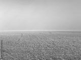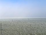 View of a frosty field in the horizon. Morning mist during an early morning. Sweden, Northern Europe.