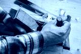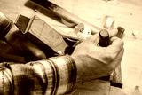 Hands of a craftsman on a old fashion woodworking plane