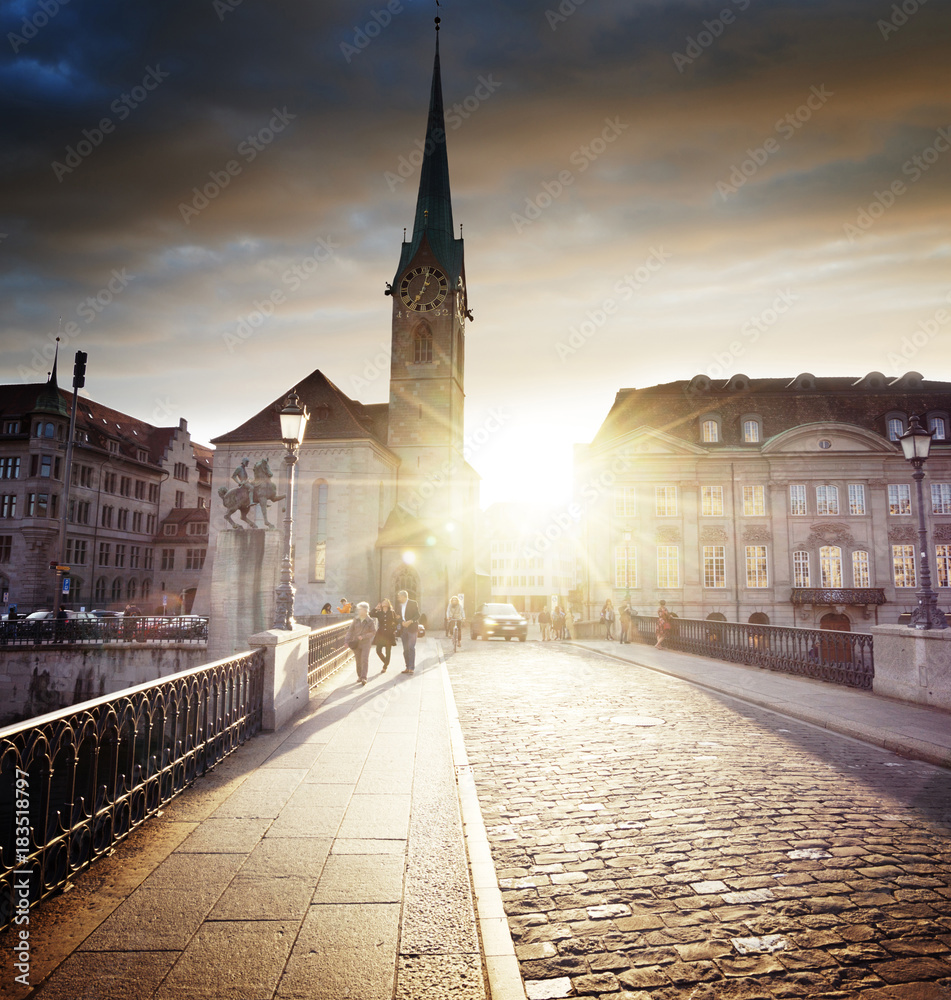 city center of Zurich with famous Fraumunster Church, Switzerland