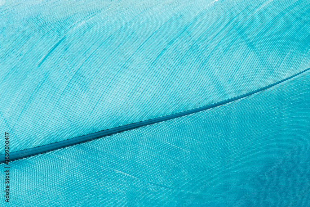 Macro photo teal feathers, natural pattern with fine texture and soft lines, abstract nature background. Minimal pastel composition for beauty, fashion, spa, design concepts. Aesthetic beauty nature.