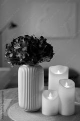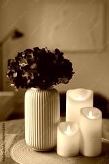 Cozy autumn home interior with warm candlelight and LED decor creating a calm hygge atmosphere
