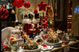Christmas decor display with nutcracker figurines.