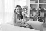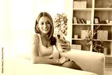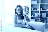 Relaxed Woman Taking Selfie On Couch At Home With Smartphone And Health Patch