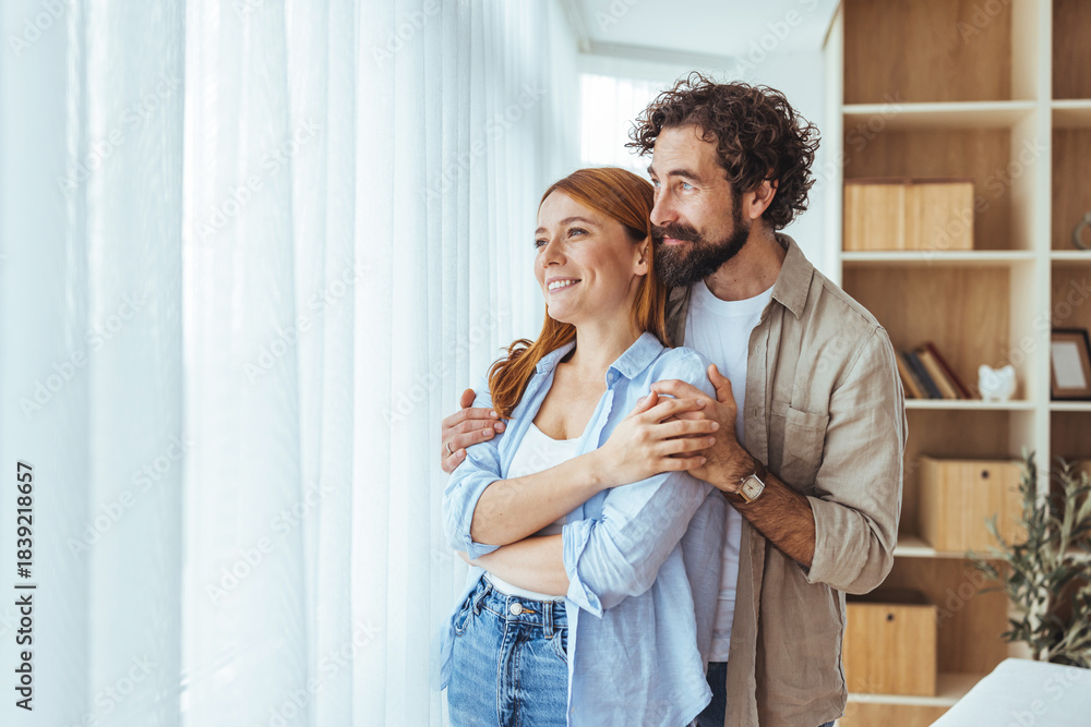 Couple Embracing By Window in Bright Home Setting, Warmth, Happiness, and Connection