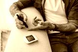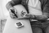 Casual Man Measuring Blood Sugar At Home With Glucose Meter On Couch