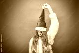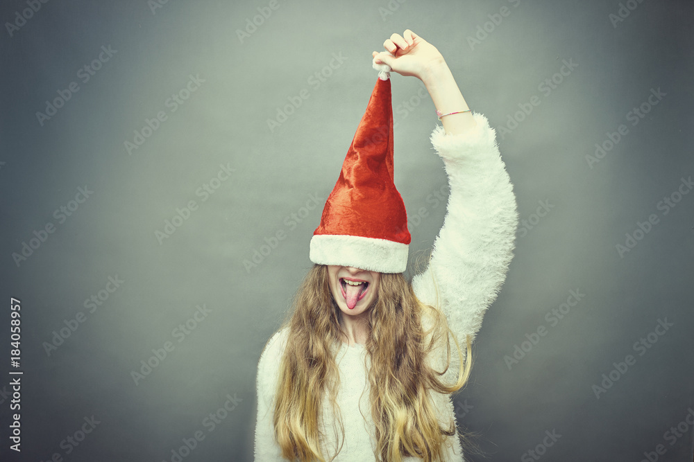 Happy Toddler girl with Santa hat .