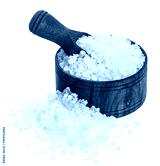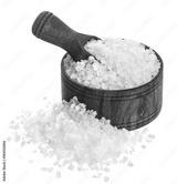 Sea salt in wooden bowl isolated on white background closeup