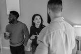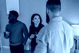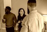 Diverse friends enjoying social conversation during casual party