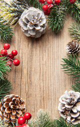 Christmas winter holiday frame on rustic wood background