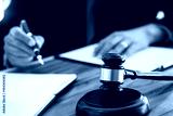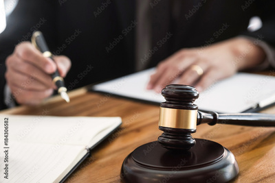 justice lawyer / judge gavel working with legal documents in a court room