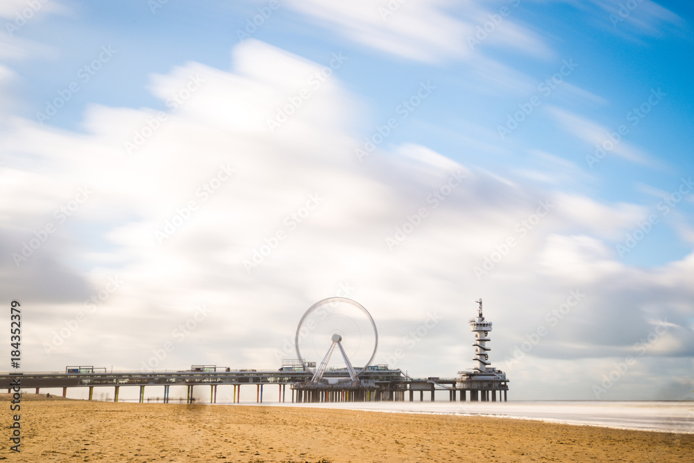Beautiful day at Scheveningen beach, Netherlands with famous Pier in the background, November 2017