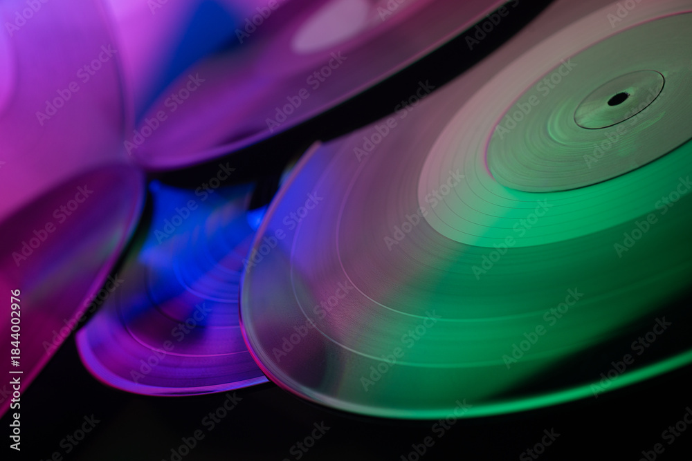 Abstract colorful music background with vinyl records