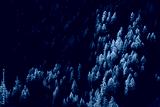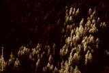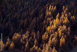 Forest of larch trees in Fall with last rays of sun. Queyras Regional Natural Park, Hautes-Alpes, French Alps, France
