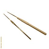 Two crochet hooks with metal tips isolated on white background. Tools for knitting, crocheting, and handmade crafts. Clean cutout ideal for hobby, DIY, and needlework concepts.