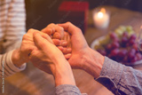 Cropped shot of lover`s hands holding together on a romantic dinner. Physical touch - love language. Bonding and togetherness. Valentine`s Day celebration