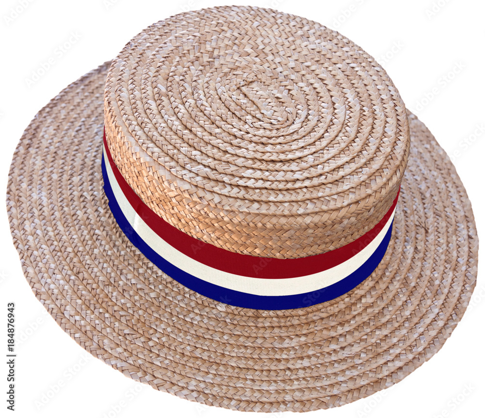chapeau de paille tricolore, canotier Maurice Chevalier, fond blanc