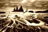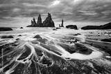 Basalt rock formations Troll toes on black beach. Reynisdrangar, Vik, Iceland