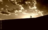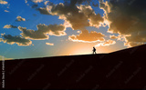 Hiker in silhouette at sunset