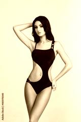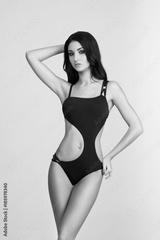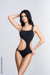 Fit, healthy and sporty woman in swimsuit. Sport, fitness, diet and healthcare concept.