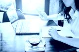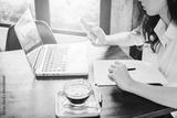 Cropped shot view of businesswoman working on her desk.