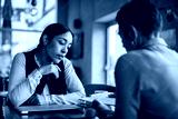 Adult businesswoman discussing paperwork with mature colleague in office, thoughtful