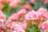 Spring scenes of red and pink begonia blooming flowers in the garden with abstract green soft nature background and wallpaper