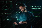 It engineer working on server in data center