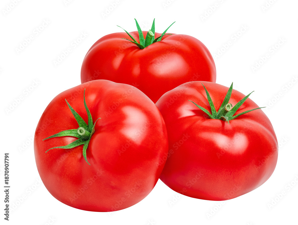 Tomato vegetables isolated on white or transparent background. Natural, organic and fresh whole tomatoes. Delicious and healthy ingredient for salads and seasonal food.