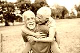 Smiling active senior couple having fun together in the park, active healthy elderly people bonding, older couple happy relationship