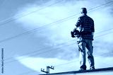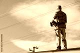 Electrician standing on rooftop