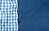 Blue canvas texture with blue checkered napkin, top view