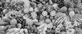 Assorted fresh ripe fruits and vegetables. Food concept background.