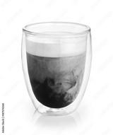 Hot coffee with milk in a glass with double walls isolated on white background.
