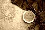 Ash wednesday ashes and olive branches on purple cloth