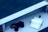 a binoculars and a notepad for notebooks left on the deck of a warship. accessories of a Marine Navy officer.