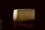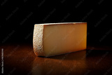 a large piece of Swiss cheese on a black background. side view. Milk product from cow's milk.
