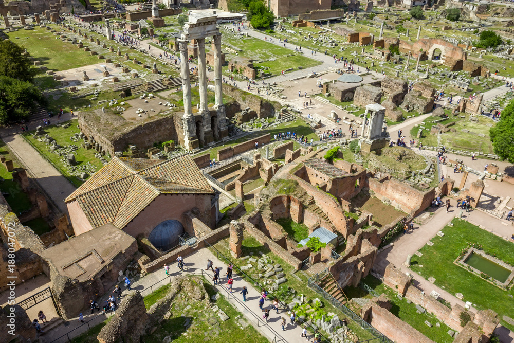 Scenic view over the ruins of the Roman Forum in Rome, Italy