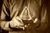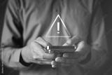 Cybersecurity alert concept with warning symbol on smartphone, representing firewall protection, network defense, system threat detection, and digital security risk management.