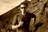 Athlete runner trail running in mountains nature. Sport active fitness ultra trail, run marathoner training outdoor in summer outdoors. Man with sunglasses.
