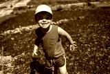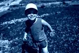Delighted child smiles while having fun in a mountain stream