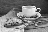 Coffee in a cup with cookies and nuts
