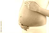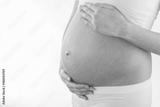 The picture of baby bump isolated on white background. The happiness of waiting for a new family member.