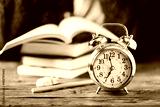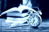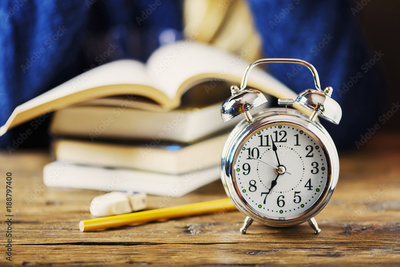 Stydying concept: student preparing late for his exams